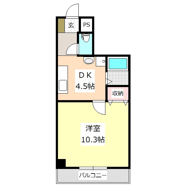 | 間取り詳細 | 洋室 10.3畳 、 DK 4.5畳 |