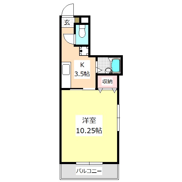| 間取り詳細 | 洋室 10.25畳 、 K 3.5畳 |