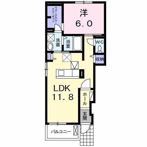 | 間取り詳細 | 洋室 6畳 、 LDK 11.8畳 |
