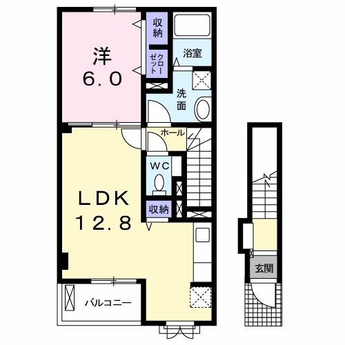 | 間取り詳細 | 洋室 6畳 、 LDK 12.8畳 |