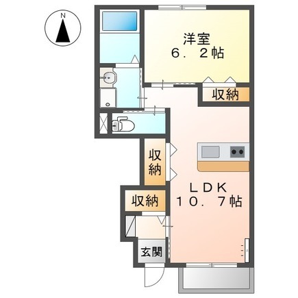 | 間取り詳細 | LDK 10.7畳 、 洋室 6.2畳 |