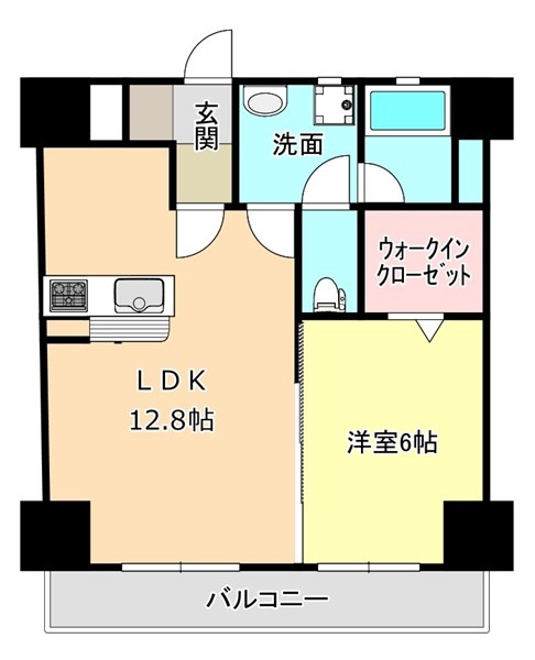 | 間取り詳細 | LDK 12.8畳 、 洋室 6畳 |