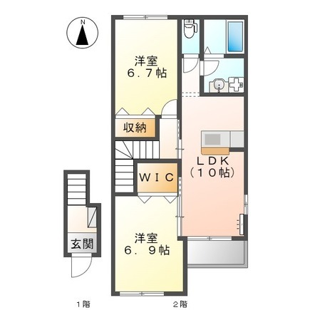 | 間取り詳細 | LDK 10畳 、 洋室 6.7畳 、 洋室 6.9畳 |