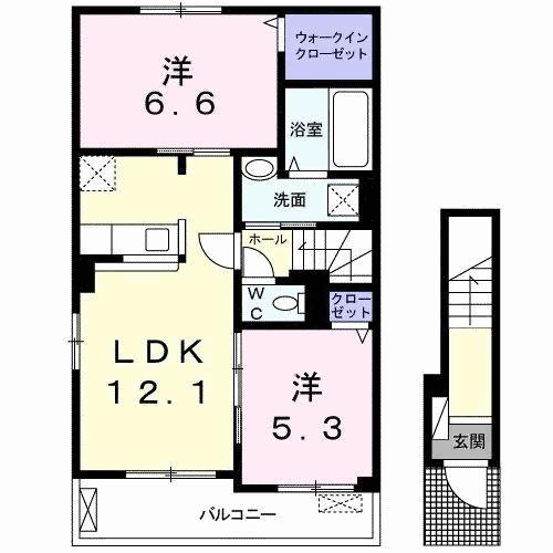 | 間取り詳細 | 洋室 6.6畳 、 洋室 5.3畳 、 LDK 12.1畳 |