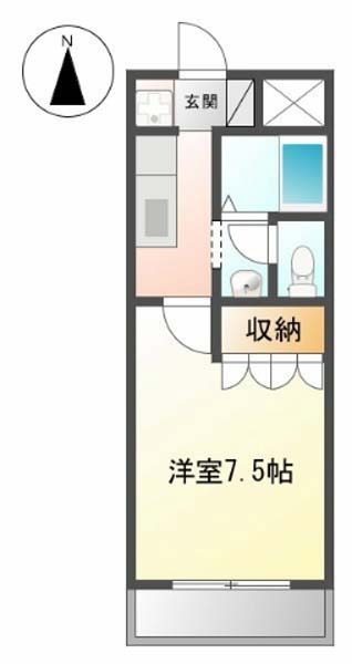 | 1K | 洋室 7.5畳 | 24.75㎡ |